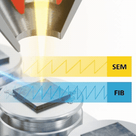 the first pass. Live simultaneous SEM imaging during FIB milling has
