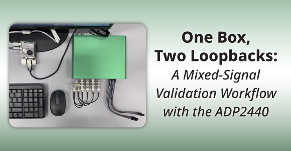 This recent blog post walks through a practical mixed‑signal validation workflow using the Analog Discovery Pro ADP2440, showing how analog and digital loopback testing can be combined in a single setup. Using WaveForms software, the workflow demonstrates how to generate, measure, and decode signals with one instrument, helping engineers establish a reliable baseline early in the development cycle and reduce setup complexity during bring‑up and validation.